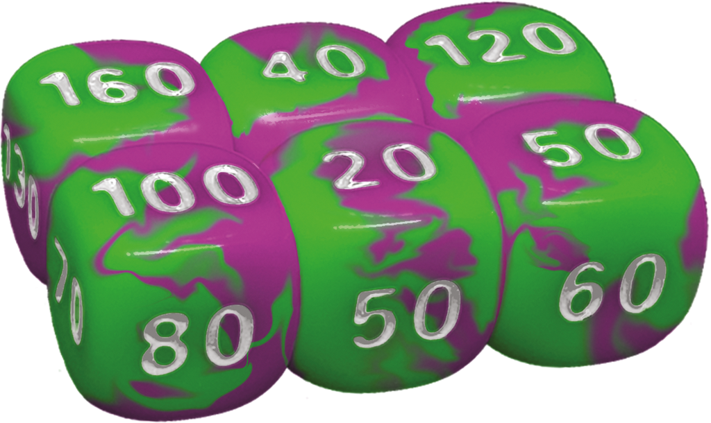 - 6 damage-counter dobbelstenen